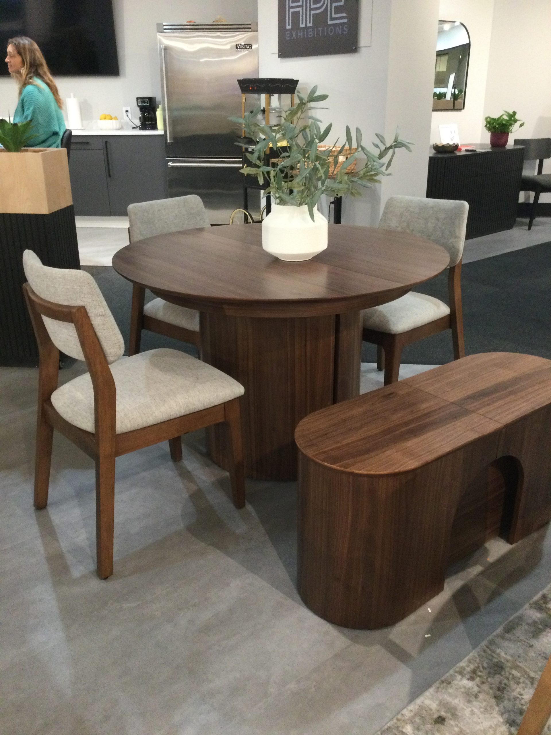 Dining furniture is having its moment. Chairs were a standout category, displaying eclectic mixes of materials and designs inspired by multiple art forms. Transformative tables that start as small as 36” now easily extend to accommodate 10-12 people for dinner parties in any size space.